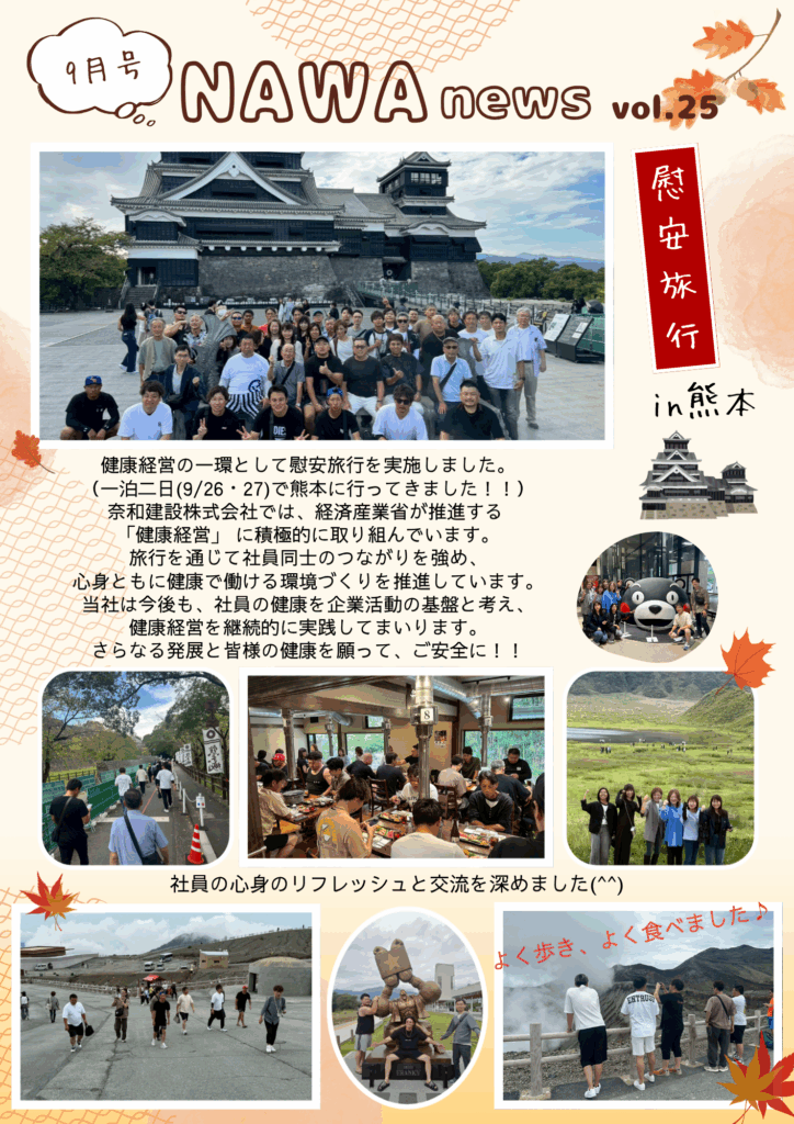 健康経営の一環として慰安旅行を実施しました。(一泊二日(9/26・27)で熊本に行ってきました!!)