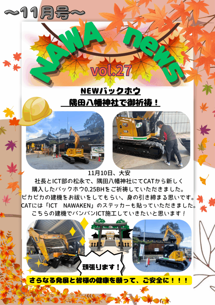 NEWバックホウ 隅田八幡神社で御祈祷!
