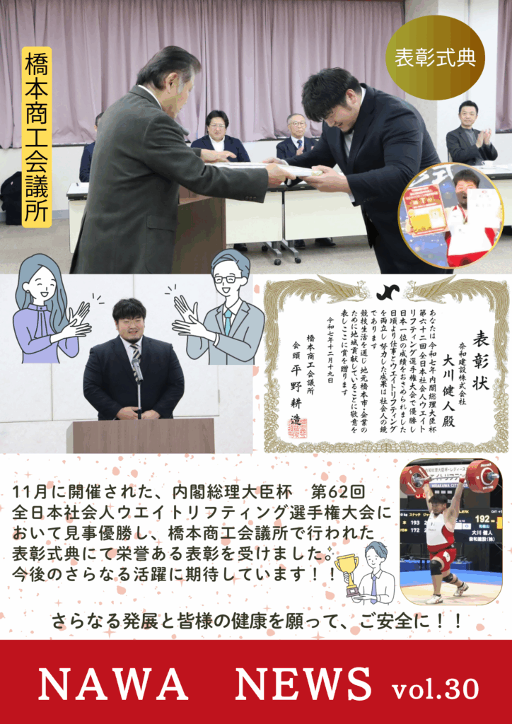 見事優勝し、橋本商工会議所で行われた表彰式典にて栄誉ある表彰を受けました。